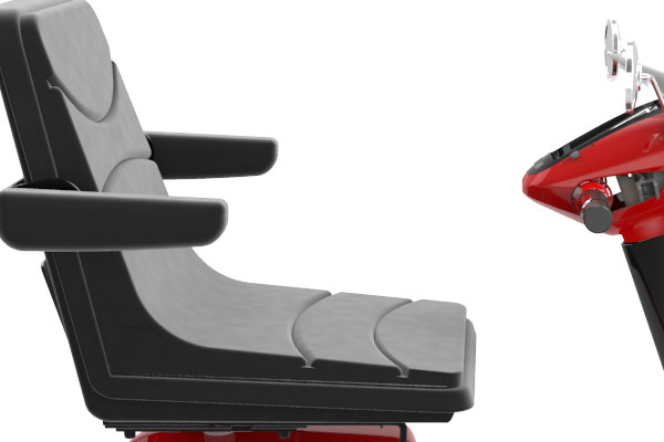 可調式旋轉座椅與全避震系統提供舒適感絕佳的騎乘體驗. Adjustable Swivel Seat With Full Suspersion System Provide Excellent Ride Comfort Experience.